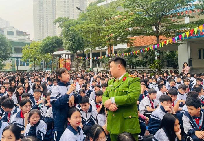 Buổi tuyên truyền còn có sự hiện diện của Ban Đại diện cha mẹ học sinh, Ban Giám hiệu nhà trường, các thầy cô giáo cùng toàn thể học sinh khối 6 và 7.