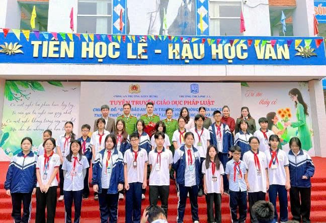 TRƯỜNG THCS PHÚ LA- CÔNG AN PHƯỜNG KIẾN HƯNG PHỐI HỢP TUYÊN TRUYỀN PHÁP LUẬT VỀ AN TOÀN TRƯỜNG HỌC CHO HỌC SINH.