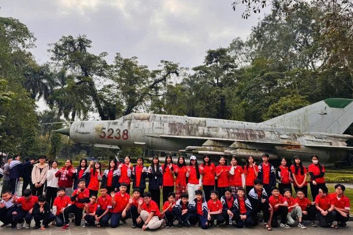 Học sinh trường THCS Phú La tham gia học tập trải nghiệm tại Khu di tích Đại đội 915, Hồ núi Cốc tỉnh Thái Nguyên